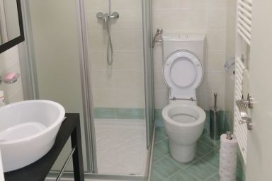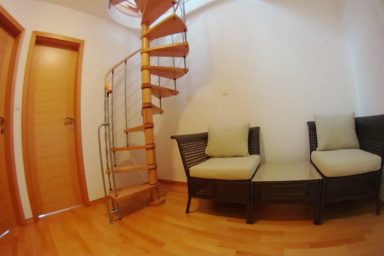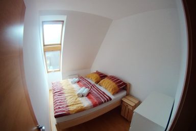 Bovec – Pleasant accommodation in the outdoor town of Bovec in the Slovenian Julian Alps, in apartment houses, located in the heart of the town. There are a total of three apartment houses, each with a capacity of 10 people (total 30 people). The area provides great opportunities for sports, regeneration, relaxation and trips in the valley of the emerald river Soča, in every season (canyoning, rafting, zipline, mountain biking, kayaking, downhill skiing, lakes, bike paths, protected areas with beautiful nature parks, golf playgrounds and hiking trails of varying difficulty). The apartments always have a covered wooden shelter for storing bicycles, skis, roller skates, golf carts, prams, etc. Also a relaxation area (small terrace) with sitting area, swing. Each apartment has one reserved covered parking space immediately in front of the building. The area of each apartment is 114 square meters, on 3 floors. Ground floor: kitchen, hallway, toilet. 1st floor: 2x 2-bedded room, 1x living room (2 extra beds available), bathroom + shower and toilet, hallway. 2nd floor: 5-bedded room (roof suite). Garden terrace 25 m2. Accessibility to the center is 5 min., Garni Hotel 3 min. by walking. Petrol station 500 m, medical center 400 m. Perfect choice for your family stay in Bovec.