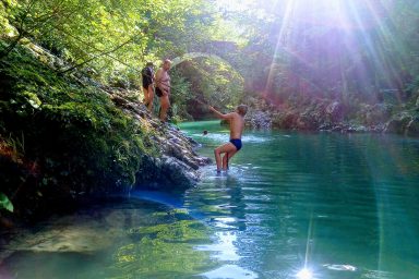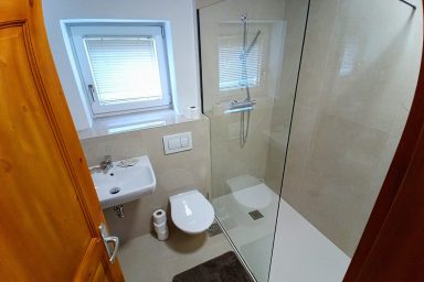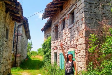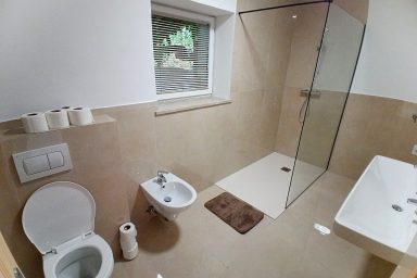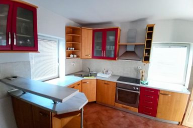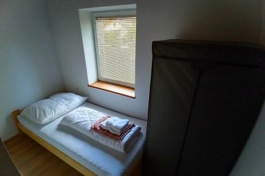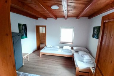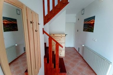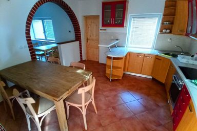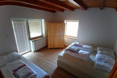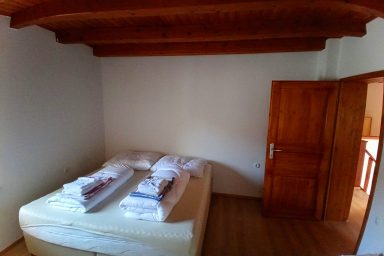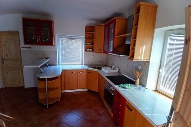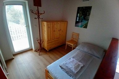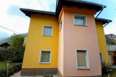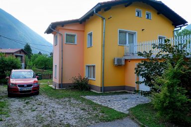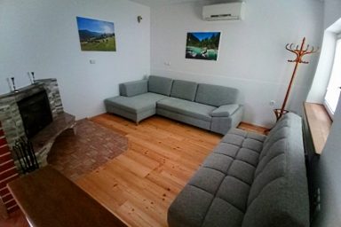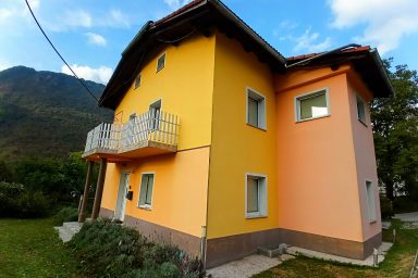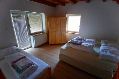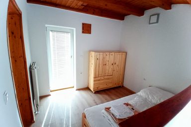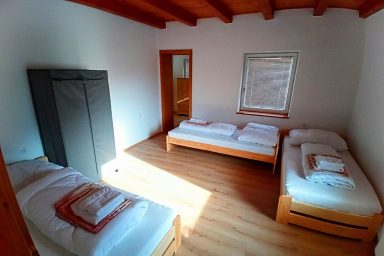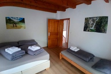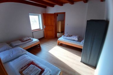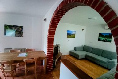 Sužid – opravený rodinný domek v konfiguraci 10 os. (8 + 2 os.), vzdálený jen 2 min. autem od Kobaridu, skvěle dostupný také pěšky po turistické značce (15 min.) nebo po nádherné cyklostezce na kole (5-7 min.). Lokace je vskutku úžasná. Objekt se nachází v malebné a malé vesničce Sužid, uprostřed zelených strání a luk pod Matajurským hvozdem (Matajur 1642 m.n.m. – fantastický výhled). Lokace je vhodná zejména pro nenáročnou turistiku, rodinnou cykloturistiku, parádní výlety, pro toulání v hlubokých lesích, úžasné koupání v teplé řece Nadiža se scenériemi starého Napoleonova mostu s divokými a čarokrásnými výhledy na okolní přírodu na slovinsko – italském pohraničí. Užijí si ji však i outdoorový nadšenci a milovníci horských kol, protože nedaleká vesnička Robidišče nad řekou Nadiža, je vyhlášená parádní lesními traily, které si užije každý nadšenec MTB. Na své si zde zkrátka přijde úplně každý. Třeba jen 2 km odtud, najdete zážitkovou restauarci „Hiša Franko“, která je držitelem michelinské hvězdy. Strategické umístění (Bovec 20 min, Tolmin 20 min., italské Cividale 30 min., Udine 45 min.) předurčuje tuto lokaci pro rozmanitý charakter pobytů a návštěv mezi Bovcem, Tolminem a italskými vinnými lokacemi. Kupříkladu tzv. slovinské Toskánsko (vyhlášená vinná oblast Goriška Brda), je odtud vzdálena jen 20 min. autem. Konfigurace ubytování je následovná. Přízemí – chodba, WC a soc.zařízení, kuchyně, obývací pokoj s krbem (lze využít pro přistýlky 2 os.), vstup do garáže. 1.patro – prostorná chodba, tři ložnice (celkem 8 os.), WC a sociální zařízení,. K dispozici je také rozlehlá zahrada s venkovním posezením pod dřevěnou pergolou a taktéž bezpečné parkování na pozemku domu pro další dva automobily.