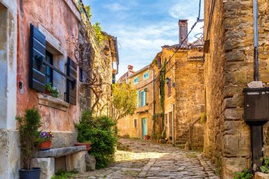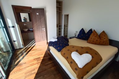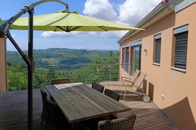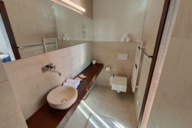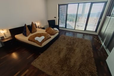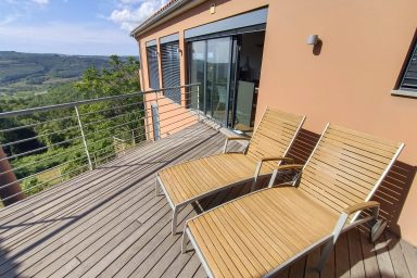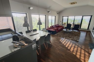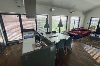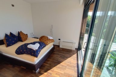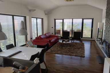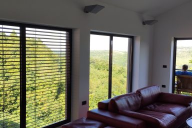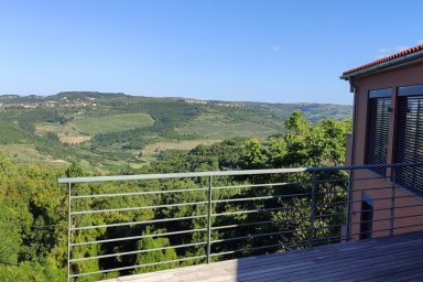 Sveti Peter – (mezi Koperem / 15 km a Portoroží / 8 km), jen 3 km od hranice s Chorvatskem najdete luxusní moderní rezidenci umístěnou v samotném srdci slovinské Istrie, ve svahu s výhledem na moře a jedinečnými scenériemi italských Dolomit přes Terstský záliv. V bezprostřední blízkosti naleznete nekonečné vinice a olivové sady. Lokace je určena pro náročnější klientelu. Kapacita je 10 os. (6 os. + 4 os. přistýlka). Objekt má několik balkónů a ocenit můžete zejména originální mimoúrovňové terasy spojené schodištěm. Dispozice objektu se skládá z velmi prostorné a prosvětlené, moderně vybavené kuchyně, spojené s jídelnou a obývacím pokojem s TV a krbem (odtud výstup na balkón s výhledem). Dále je na patře k dispozici technické zázemí (WC + pračka, myčka, sušička) a prostorná chodba se zádveřím. Z kuchyně je dostupná horní terasa s možností relaxačního posezení, opalování, s využitím grillu a posezení. 1.PP je dostupné jednak vnitřním schodištěm, ale také venkovními terasami. Ložnice zde oplývají zejména velkými okny a výhledem do zeleně a na nedaleké moře, což je charakteristické pro celý objekt. Každá ložnice má integrované komfortní a prostorné sociální zařízení. Na patře je společná sauna. 2.PP je dostupné pouze schodištěm po venkovních terasách. Skládá se z jedné komfortní ložnice otevřené na balkón a sociálního zařízení. Objekt má vyhrazená parkovací stání. Je zde možnost úschovy kol, kočárků a dalšího sportovního vybavení. Dostupná je wi-fi a klimatizace. Lokace je strategická nejen pro blízkost moře (součástí jsou 3 krytá parkovací místa v Portoroži přímo u pláže – možnost využití), ale i vinnou cyklo – turistiku (vinice Brič na seznamu 100 nejlepších vinic světa), turistiku v NP podél řeky Dragonja. Atraktivitu lokace umocňuje akční blízkost a rychlá dostupnost historických lokací v chorvatské části Istrie (Grožnjan, Motovun a Buzet). Autem jsou také velmi blízce dostupné lokace (Umag, Poreč a Rovinj). K dispozici jsou dále tři parkovací stání v parkovacím domě v hotelu Metropol (Portorož přímo u pláže).