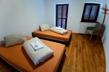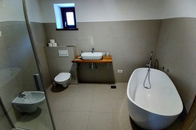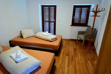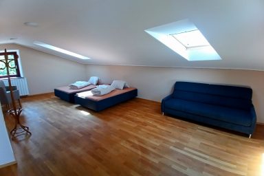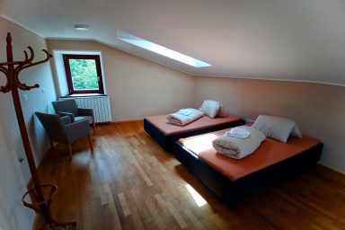Vitovlje – 3 podlažní nově zrekonstruovaný dům s kapacitou 11 os. (9 os. + 2 os. přistýlka). Interiér tvoří 4 ložnice a 2 obývací prostory s možností přistýlek. Na každém patře je velmi komfortní a prostorné sociální zařízení. V 1.NP – moderně vybavená kuchyně spojená s jídelnou a prostorným obývacím pokojem s TV s výstupem na zahradu. Najdete zde také zádveří, prostornou chodbu a WC se sprchovým koutem, technickou místnost s pračkou. Ve 2.NP jsou umístěny 2 x ložnice, jedna jako 3/lůžková, druhá jako 2/lůžková, dále pak velmi rozlehlá koupelna s originální prostorovou vanou, sprchou a WC. Dále malá místnost s možností 2x přistýlek. Ve 3.NP je 1 x manželská ložnice jako 2 lůžkový pokoj a dále velká, vzdušná, prosvětlená střešní místnost sloužící jako ložnice (2 os.) a velkorysí obývací prostor současně. WC a sprchový kout je k dispozici taktéž. Privátní parkování bezprostředně u domu, k dispozici také technická místnost pro úschovu kol, kočárku a ostatního vybavení. V místě je wi-fi a také balkón s relaxačním posezením příp. venkovní terasa pro grilování vč. grilu. Lokace je vhodná zejména pro vinnou cykloturistiku v oblasti Vipavské doliny a lehkou horskou turistiku v kraji Trnovského gozdu. Specialitou jsou cyklo-traily a parádní trasy na horská kola. Milovníci paraglidingu zde ocení rychlou dostupnost na blízké, atraktivní startovačky. Strategická pozice ve vztahu k dálnici, moři a přístupu do vnitrozemí, je absolutně stěžejní. Koncept „friends house“ ocení hlavně velké rodiny, skupiny, party a uzavřené komunity.