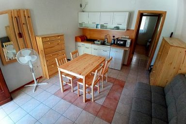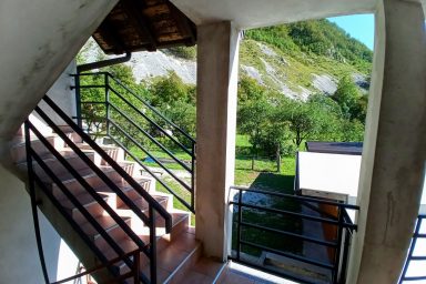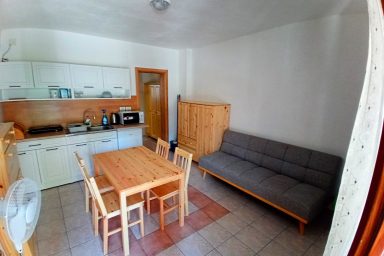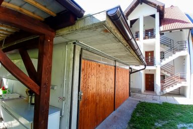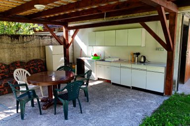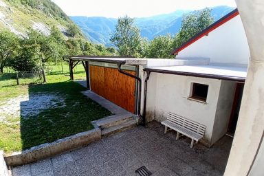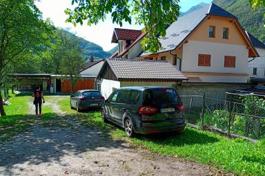 Apartment tourist house under the Polovnik ridge, at the bend of the Soča river, which changes flow direction towards Kobarid. An ideal place for all those looking for a quiet place outside the tourist and busy center of Bovec. However, accessibility is ideal. So, a bit of a memory of a holiday by grandmother and grandfather in the countryside. Large garden with fragrant grass, parking spaces, paddock for dogs, safe area for children. Beautiful sunny terrace, summer kitchen with sitting area. Six pleasant apartments furnished in a simple tourist style. Just a short way is accessible great pizzeria in the village of Žaga, relaxing sitting in Čezsoča in a Prijon bar, to Bovec 6 km along the river Soča, for example on bikes. Famous scenery, peace, quiet, the smell of the countryside. Ideal for all who prefer a simple and at the same time practical style of living with the possibility of grilling, sitting, storing bicycles and prams. Enjoy Log Čezsoški in full sips.